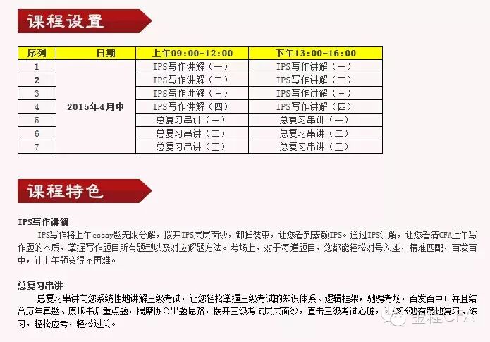 十余年来,金程教育在CFA考试领域不断开拓、创新,始终以帮助学员顺利通过考试为目标,不断努力。从满足大众需求,到满足特殊需求;从全方位课程体系,到专项课程精炼。针对CFA三级课程中的难点,金程教育对症下药,特推出CFA三级【考前精品通关班】——带您进行全面的梳理和深度剖析,熟练掌握CFA三级IPS得分要素。